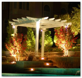 Night lighting contrasts the appearance of forms seen under daylight, with the appearance of forms seen at night under artificial lighting in the absence of daylight. Integrating lighting with your landscaping design is a means of bringing the exterior of your home to life, by strategically spotlighting significant horticultural or architectural features.